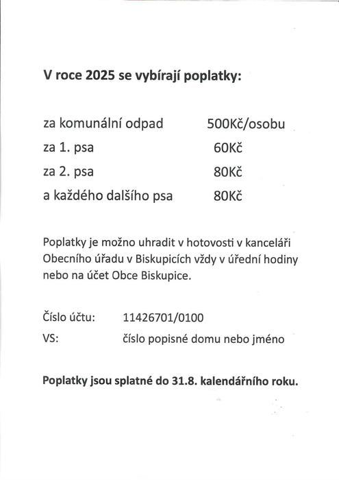Úvod > Život v obci > Aktuality > Poplatky za komunální odpad a psy na rok 2025