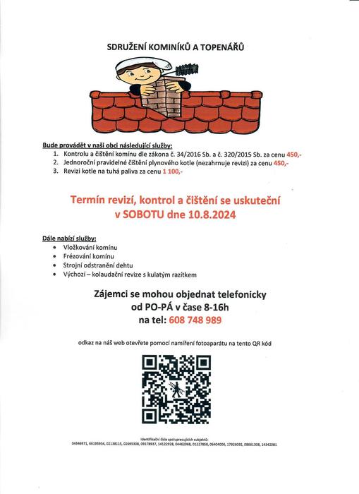 Úvod > Život v obci > Aktuality > Revize, kontroly a čištění komínů 10.8.2024